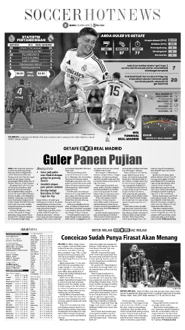 pekan ini, Ancelotti memutus- • Bersiap hadapi menyentuh bola. pundukung Madrid memberikan La Liga musim ini dari 33 tampil, dari cedera. Kedua klub juga akan