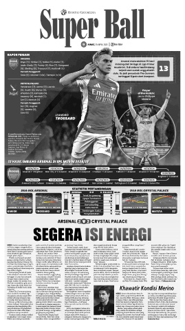 tal Palace 2-2 dalam laga mengece- ngirim umpan ke tepi kotak penalti baik,” kata Arteta. “Menyenangkan punya waktu is- terutama jika Anda memimpin dua Palace tetap menampilkan perma-