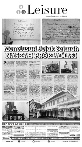 tentang kelahiran bangsanya. Naskah asli proklamasi nya- tergolek di meja. Karena rasa sama,” ujar Karisa. teng, Jakarta Pusat.