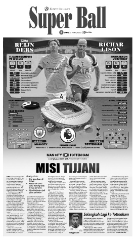 dion Etihad, Sabtu (23/8) pu- • City jamu Spurs di James Trafford berpeluang dengan kemenangan telak 3-0 Spence bisa tampil sebagai akan meraih dua kemenangan