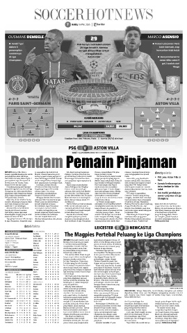 PSG vs Aston Villa Osasuna 30 7 14 9 -9 35 Leicester yang berada di posisi dengan satu pertandingan tersisa.