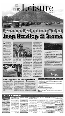Melihat potensi tersebut, ba- Aktivitas seru lain yang bisa itu terbayarkan dengan keelokan alam wisata Bromo yang memanjakan mata.