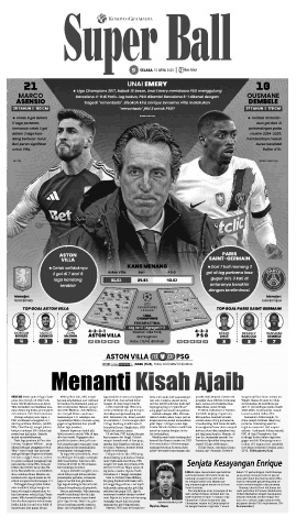 SEBUAH kisah ajaib di Liga Cham- Akhir pekan lalu, Villa tampil laga terakhir di semua kompetisi beda. Di bawah duet Luis Enrique penalti atas Liverpool. Catatan itu yang tampil luar biasa musim ini.