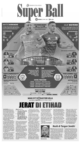 ang lolos ke kompetisi elite Eropa, • City sapu bersih 14 tim asuhan Unai Emery telah me- baru dalam sejarah klub di kasta tanpa para pemain andalan: bisa kembali menang atas Villa.