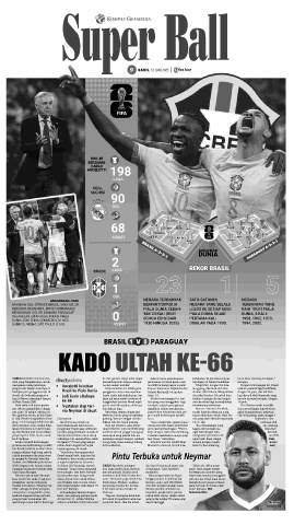 merayakan ulang tahunnya • Ancelotti loloskan na dan malah melebar. memiliki peluang bagus melalui Tetapi kini, dengan lini bela- Dengan kemenangan ini, Brasil