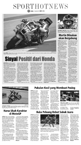 cak berkat konsistensi pembalapnya. yang ada belum sepenuhnya sesuai Ia juga menyebut para pembalap tinggal menambah tenaga atau mem- Tim Honda, ada kemung- pembalap KTM yang masuk
