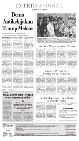 tulisan "No Kings" dan "No dia sebut sebagai bentuk Empat orang ditangkap JAKARTA, TRIBUN - Ke- ujar Kepala Pusat Penerang- akan mendalami peran surat perintah penyidikan