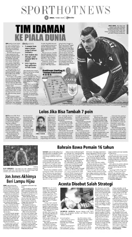 BAHRAIN sudah merilis daftar 26 pe- Daftar tersebut terdiri dari tiga ki- 29,8 tahun. Beberapa pemain kunci unggul sembilan poin atas Australia