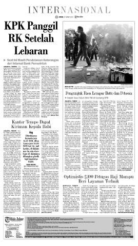 kan setelah lebaran. “Bisa jadi KPK sudah menyita duit de- dan PT Cipta Karya Mandiri AKSI UU TNI - Sejumlah mahasiswa melakukan aksi di depan pintu gerbang Pancasila, Gedung DPR, Jakarta, Kamis (20/3).