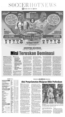 menjamu rival bebuyutan, Brasil, •Jika menang tiga kali dari 13 pertandingan ku- dalam 12 laga kualifikasi terakhir Juara dunia lima kali itu tam- tivasi dan energi yang harus kami