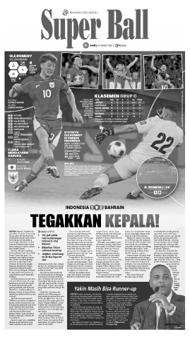 ANGKAT dagumu. Tegakkan ke- Jalan memang masih terjal, rangan Garuda. Umpan yang match. Dan sang bomber menga- mendedikasikan setiap gol yang