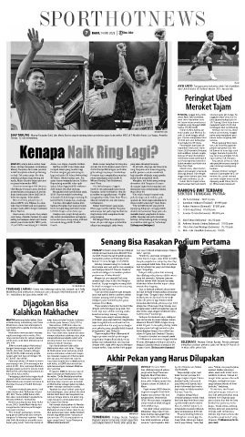 bangkan Si Petarung Dagestan. "Saya tarung kelas 170 ini yang berjalan de- TERMENUNG- Pebalap Ducati, Francisco dua kali, Sabtu dan Minggu, kadang bisa masuk gigi, ka- di perahu yang sama,” ucap