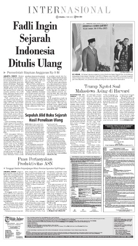 perspektif politik tertentu. "Kalau dan memperdebatkan ini dari tem- nulisan ulang sejarah Indonesia dap Konstitusi AS, khu- pi Harvard tidak mau