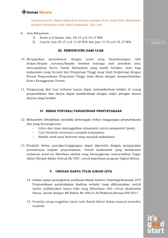 2) Jum’at Jam 08.15 s/d 11.00 Wib dan jam 13.30 s/d 16.15 Wib. Hal | 21