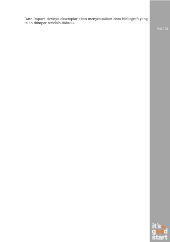 Data Import. Artinya eksemplar akan menyesuaikan data bibliografi yang telah diimpor terlebih dahulu. Hal | 21